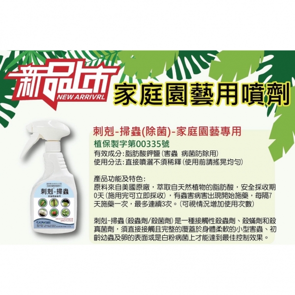 刺剋-掃蟲(除菌) 家庭園藝專用 免稀釋噴劑500c.c 植保製字第00335號 免登記植物保護資材