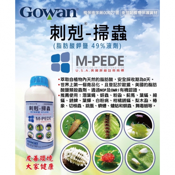 刺剋-掃蟲M-PEDE(Potassium Salts of Fatty Acids 49%SL) 濃縮原液500c.c / 1L 植保進字第00027號