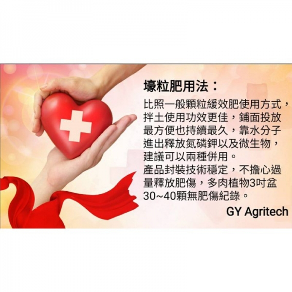 NPK 比例,提供足夠植物需求的基本三元素,特殊包膜技術緩效能力線性定量釋放,持續提供足夠植物需求的基本三元素特殊,包膜技術緩效能力本品採線性定量釋放 (如有時間曲線需求可另行諮詢 )。使用完可崩解不殘留影響環境,品質控管嚴謹不易造成肥傷 (多肉植物三吋盆 20~30 顆拌土使用無肥傷 )。