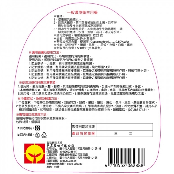 商品名稱:興農雷公殺蟲劑 0.5%水基乳劑 500ml