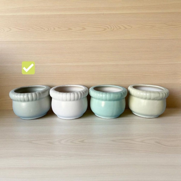 這款陶盆以飽滿圓肚為基底,搭配立體奶油擠花邊緣,呈現療癒又不過於花俏的外型。搭配霧感馬卡龍色系,是日常植栽、送禮佈置的理想小物。