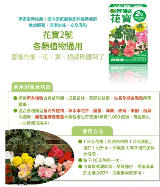 - 適合各種草木本開花植物、蘭花、果樹、果菜類。