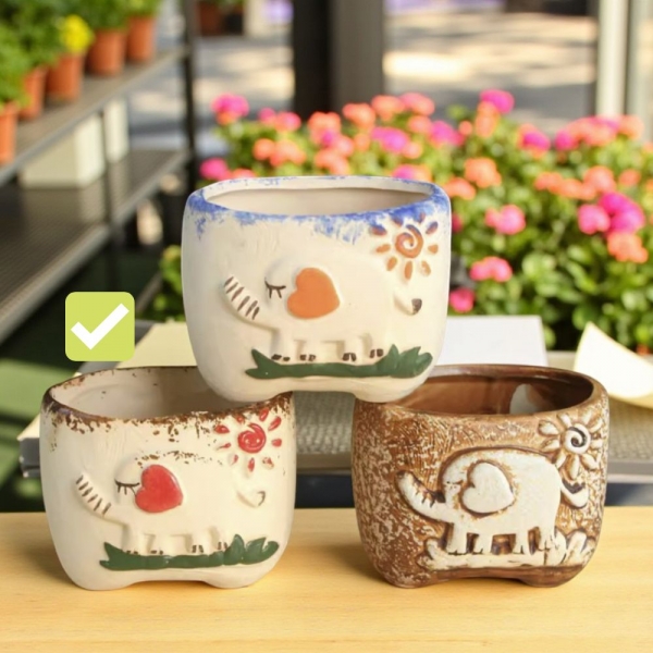 首頁- 全館商品 >愛心耳朵小象盆 陶瓷盆 破損包賠 有排水孔