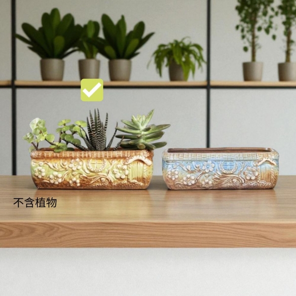 浮雕繪畫系列 鄉村花語長形盆 陶瓷盆 破損包賠 有排水孔
