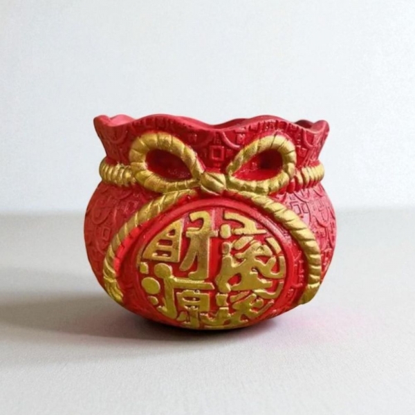 喜慶造型:福袋造型搭配紅金配色,象徵招財進寶、福氣滿滿