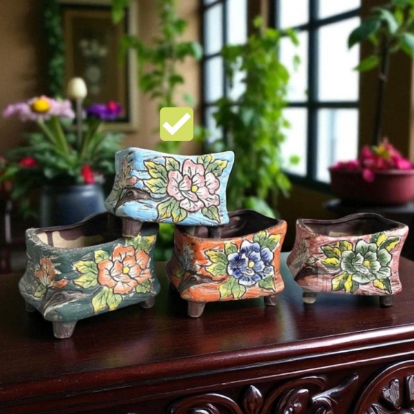 鮮豔的花卉紋樣搭配復古色澤,讓小植栽更添藝術氛圍。
