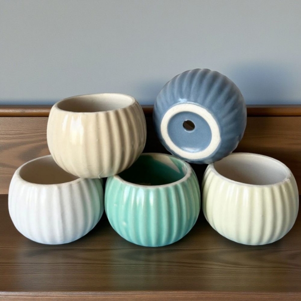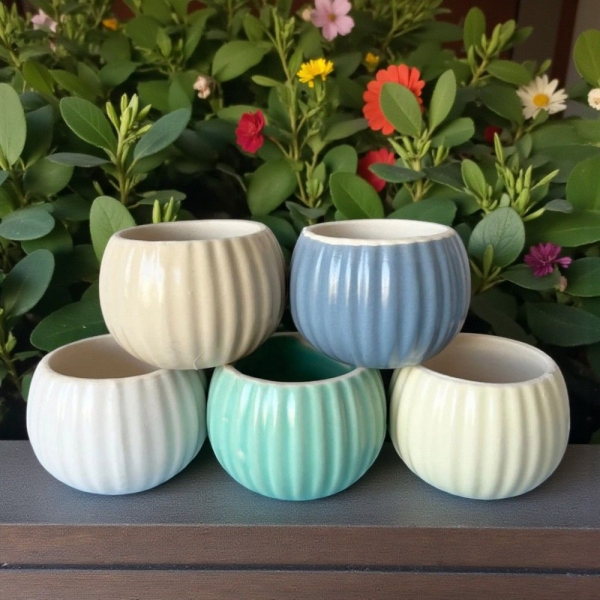 馬卡龍直紋陶盆|粉嫩色系|多肉觀葉皆適用