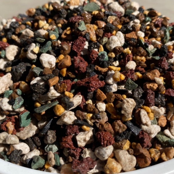 1~3mm介質內容物:土耳其白火山石、、紅火山石、黑火山石 、黃金麥飯石、硬質赤玉、硅藻土(矽藻土)、綠沸石、生物炭
