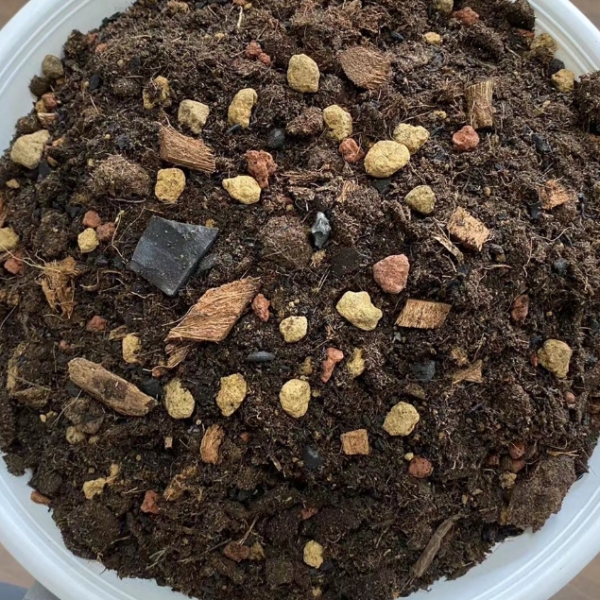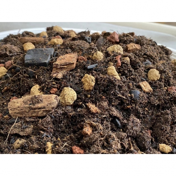 專用配方成分:粗纖植物纖維、蚯蚓糞土、硬質赤玉土、黑火山石、紅火山石、椰塊、生物碳(椰殼碳)、燻碳(碳化稻殼)
