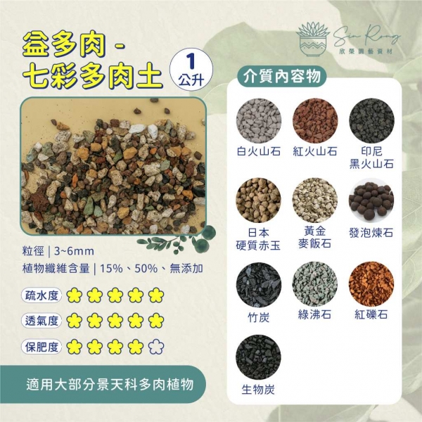 首頁- 園藝土壤 | 石頭 | 介質 >益多肉/益葉寶 1公升多肉介質
