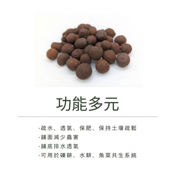 土壤混和實用:增加透氣排水性、並具有適度保濕保肥能力,依栽種的植物大小選擇適合的粒徑。
