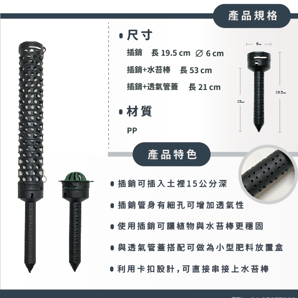 利用旋轉卡扣設計,可輕鬆使水苔棒串接再一起,達到需要的長度