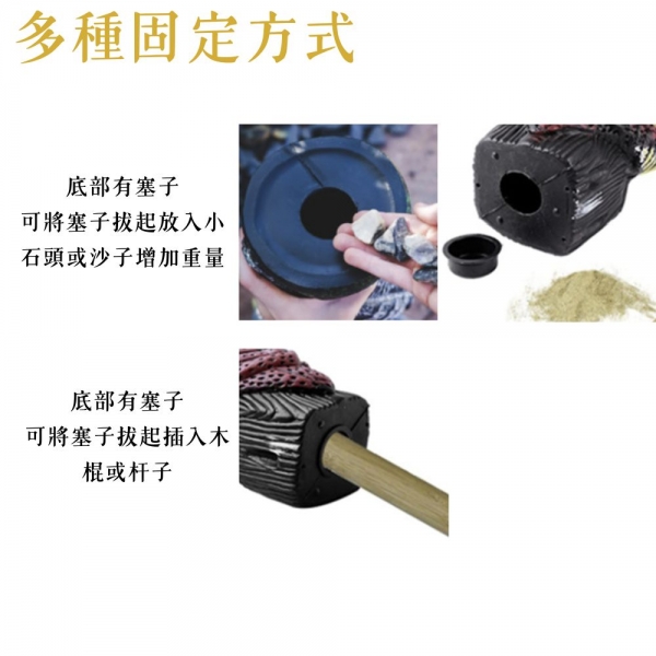 底部穩固設計: 底座可加重(注沙或加水),放置在圍欄、屋頂、花園都能穩固如山。