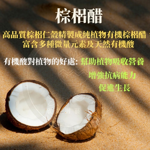 高品質棕梠仁殼精製成純植物有機棕梠醋,富含多種微量元素及天然有機酸