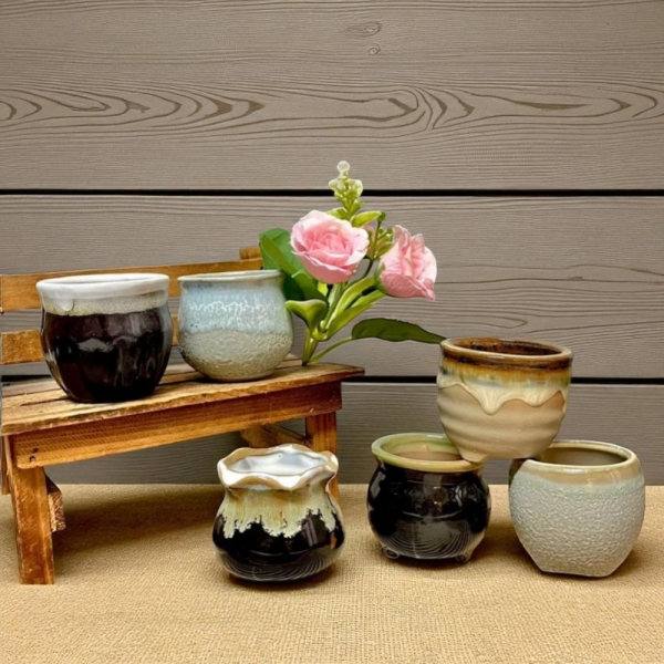 每一只陶盆都像一道風景,有的溫潤如霜,有的濃郁如焦糖。自然釉流、色澤層次,保留燒陶的獨特痕跡。不完美,卻剛剛好。