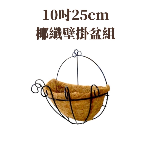 10吋25cm椰纖壁掛盆組:直徑約25.5cm / 寬度約16.5cm / 高約28cm