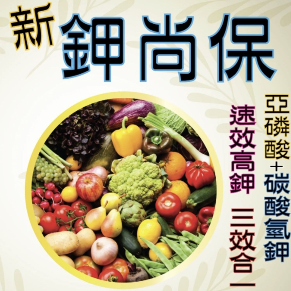 新鉀尚保特殊設計將亞磷酸鉀及碳酸氫鉀調配設計,除了具有高磷鉀肥的效用,更可大幅簡化農民使用上的複雜度,定期施用可以達到亞磷酸的效果,也可以平時在補充肥料的同時,順便發揮亞磷酸與碳酸氫鉀的作用。