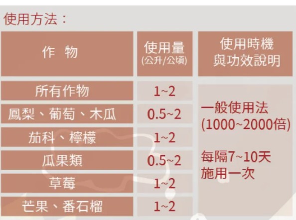 並依作物生長趨勢及產量給予適度調整。施用後