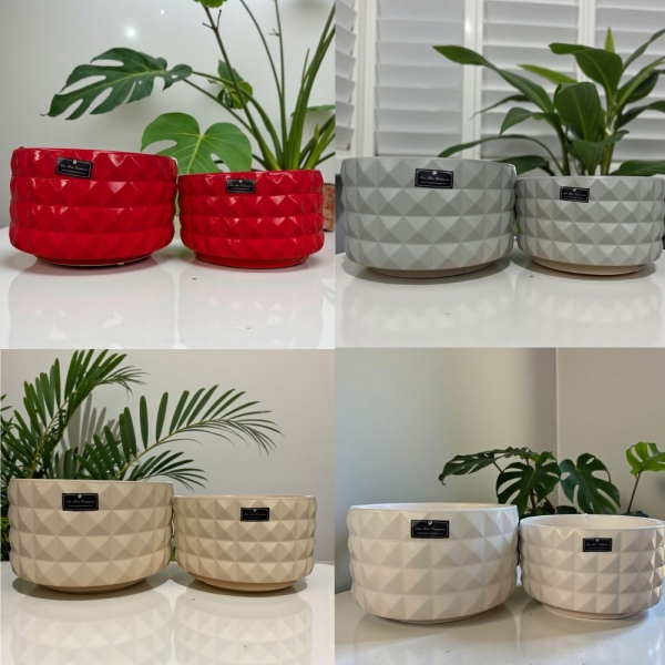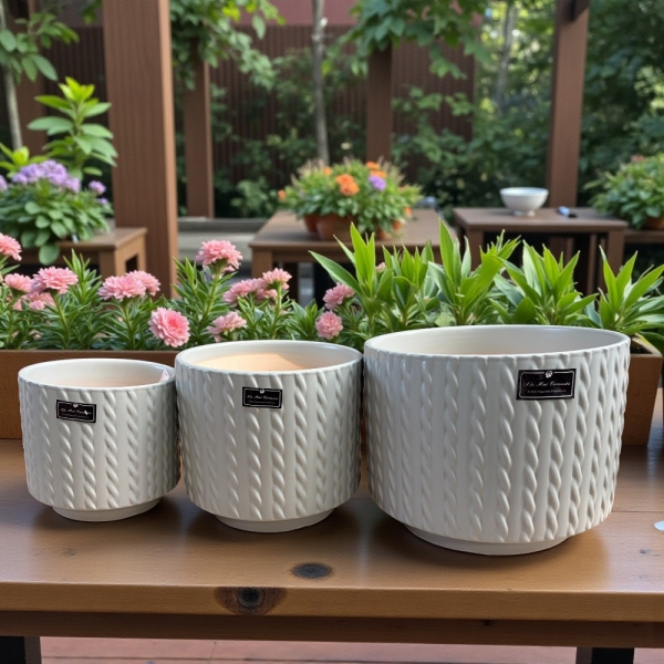 毛線編織紋矮圓筒盆 9025 - 9027 破損包賠 有排水孔