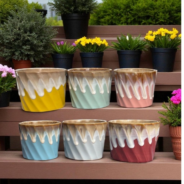 馬卡龍菱紋陶盆 陶瓷盆 破損包賠 有排水孔