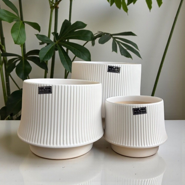 北歐風粗直紋陶瓷 9021-9024 陶瓷盆 破損包賠 有排水孔