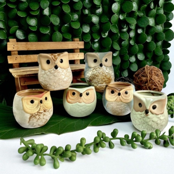 可愛動物-貓頭鷹 陶瓷盆 破損包賠 有排水孔
