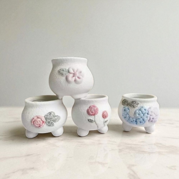 浮雕花卉陶瓷小盆B款 陶瓷盆 破損包賠 有排水孔