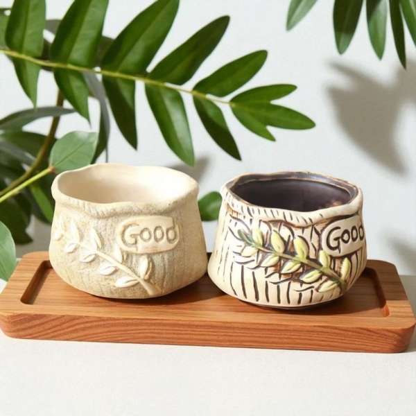 浮雕花卉陶瓷小盆A款 陶瓷盆 破損包賠 有排水孔